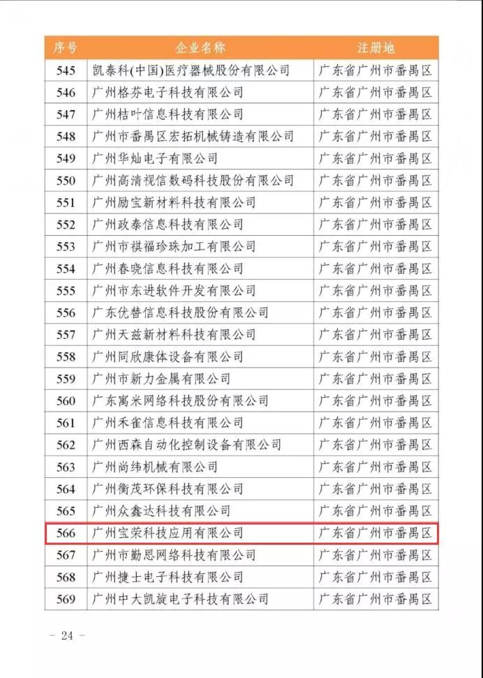 博宏子公司宝荣科技入选“广东省2018年第二批入库科技型中小企业”名单