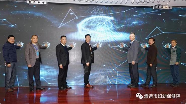 罗家泉副局长、原伟权会长、李春新董事长以及连州市妇幼保健计划生育服务中心主任成海斌、英德市妇幼保健计划生育服务中心主任柯绪林、阳山县妇幼保健计划生育服务中心主任古晏鸿共同启动清远市妇幼专科联盟信息平台。