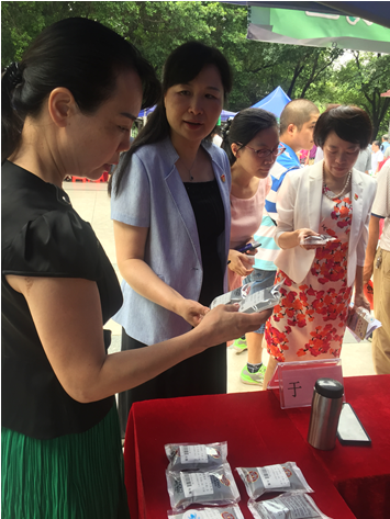 市、区卫计局领导对博宏药业展示的中医药一体化产品非常感兴趣,并前往展位参观交流。