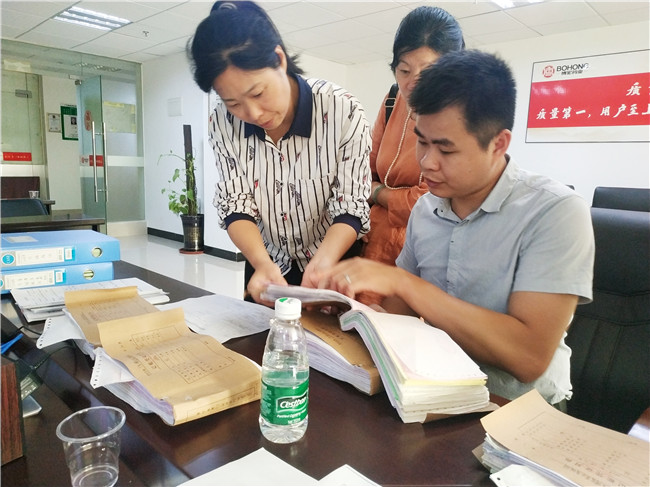 4月25日,检查组一行前往清远总部、龙塘仓库进行GSP认证(模拟)检查。上午,检查组在仓库对仓库办公现场、设施与设备、仓储与养护、计算机系统等内容进行了检查,并现场抽检4个品种(1个西药、1个冷链品种、2个中药饮片)的批号,对抽检品种的购进、销售、库存、票据等情况进行检查。下午,检查组在清远总部召开首次会议,会议由检查组组长、公司副总裁 叶正君 主持,检查组宣读认证检查纪律、检查日程安排和检查注意事项,并听取了企业质量负责人汇报的企业简介及公司GSP实施情况。之后检查组进行办公现场检查,企业资质证书、质量管理体系及文件、组织机构与质量管理职责、人员与培训、财务发票、药品报损处理情况等内容检查。